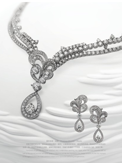 暗香铂金钻饰套装,整套作品使用"花朵"这一珠宝设计中传统的设计元素作为灵感,用数百颗绝美钻石,延续流畅的线条刻画出璀璨夺目的动人色泽。璀璨的钻石点亮了一抹温暖的凝视,让缠绵的浪漫尽情展现。娇艳妩媚的花朵仿佛幻化成翩翩起舞的绝代佳人,以轻盈优雅的姿态倾听钻石的秘密私语。
